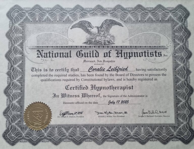 Ma formation en hypnose est reconnue par la NGH (National Guild of Hypnotists), la plus ancienne et l’une des plus grandes organisations professionnelles d’hypnose au monde.